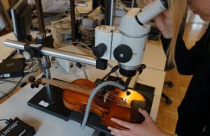 3 Eine Geige – aber keine Stradivari – im Jahrringlabor der WSL. (© Gottardo Pestalozzi)